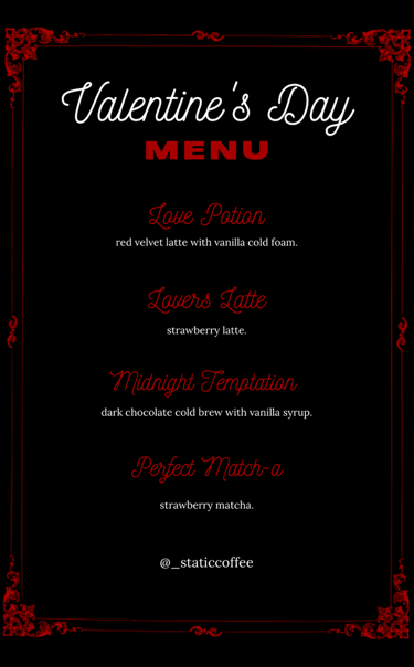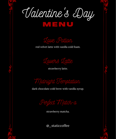 We’ll be hosting local coffee vendors during our morning sessions, making it the perfect way to ease into Valentine’s Day (vendor details and menus with prices listed below).