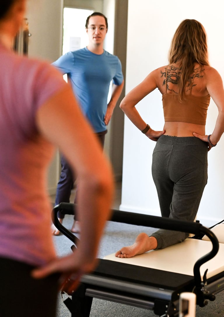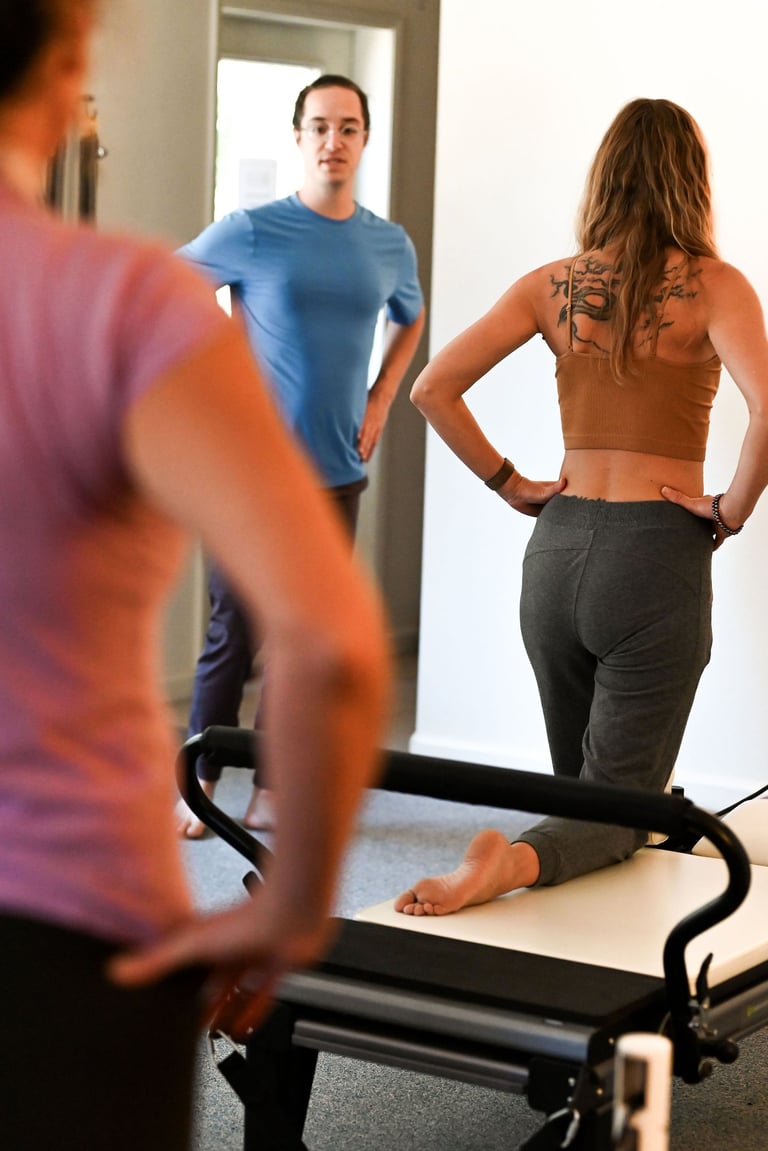 at redwood pilates, you can expect a full body work out that is adapted to your specific goals. we'll be drawing from some of the original 'contrology' repertoire as well as more recent interpretations of the repertoire influenced by dance culture, physical therapy, optimal motor learning theory, and the science of strength training.